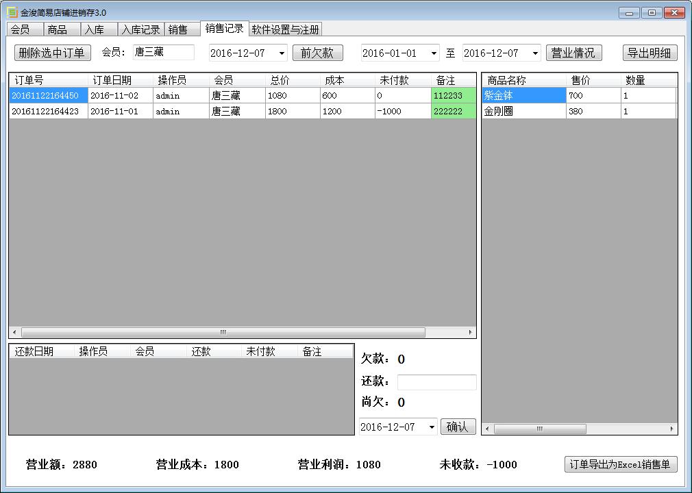 销售单据是可以根据需要删除的,删除后商品库存会自动回滚,删除入库记录也是这样。